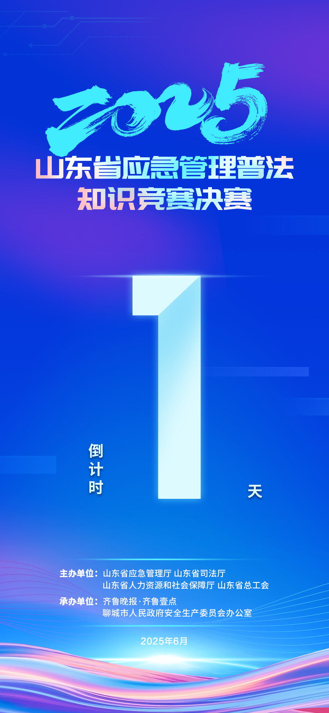 就在明天!2025年山东省应急管理普法知识竞赛决赛即将举办 大众报业·齐鲁壹点 2025-06-18 2062 齐鲁晚报·齐鲁壹点记者 于民星 就在明天!2025年山东省应急管理普法知识竞赛决赛将于6月19日在聊城举办! 竞赛以“企业履责除隐患,应急普法筑防线”为主题,由山东省应急管理厅、山东省司法厅、山东省人力资源和社会保障厅、山东省总工会主办,齐鲁晚报·齐鲁壹点、聊城市人民政府安全生产委员会办公室承办。 巅峰对决,不见不散! 责任编辑:于民星
