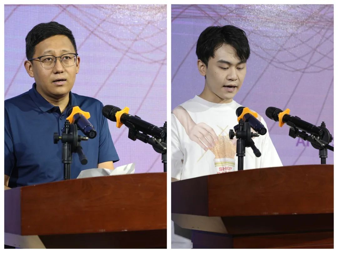 获奖教师代表王明发言 获奖学生代表张博俣发言
