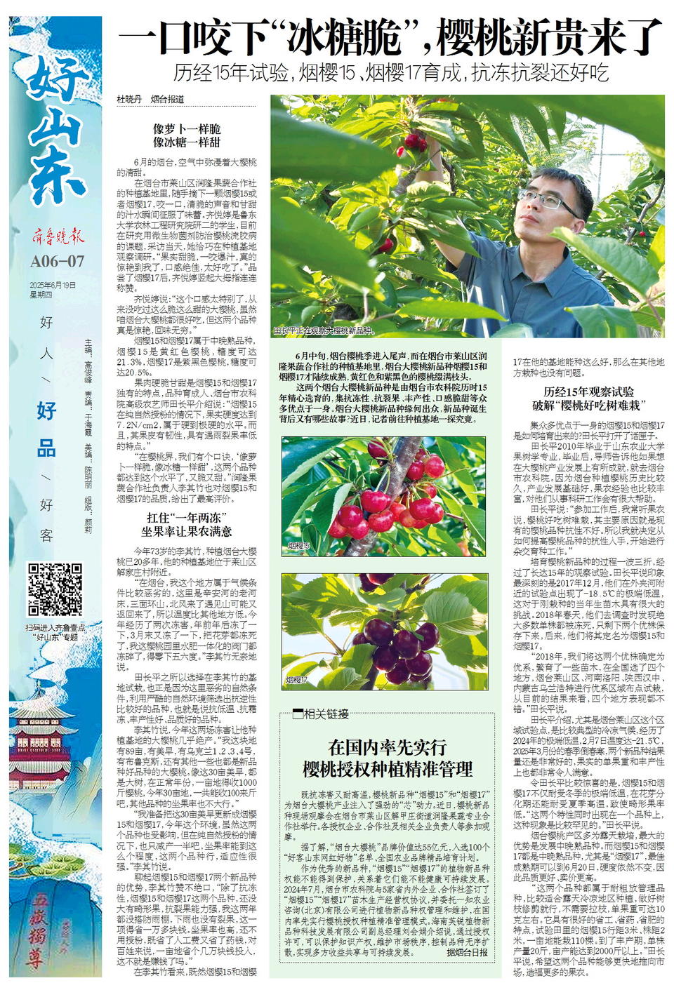好山东|一口咬下“冰糖脆”,樱桃新贵烟樱15、烟樱17来了