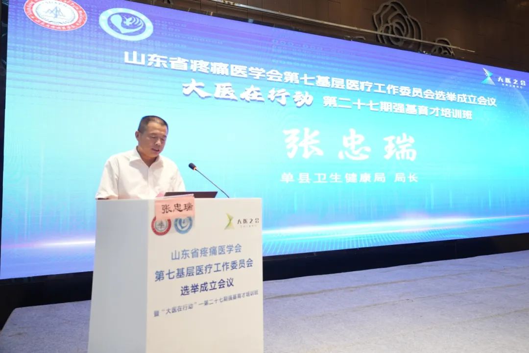 7月12日上午,山东省疼痛医学会第七基层医疗工作委员会选举成立会议暨“大医在行动”——第二十七期强基育才培训班在单县顺利召开。本次会议由山东省疼痛医学会主办,单县中心医院承办。山东省疼痛医学会会长刘玉光、山东省疼痛医学会副会长兼秘书长孙聪颖,单县卫生健康局党组书记、局长张忠瑞,单县中心医院院长时维贵以及省内外相关领域专家300余人参加会议。