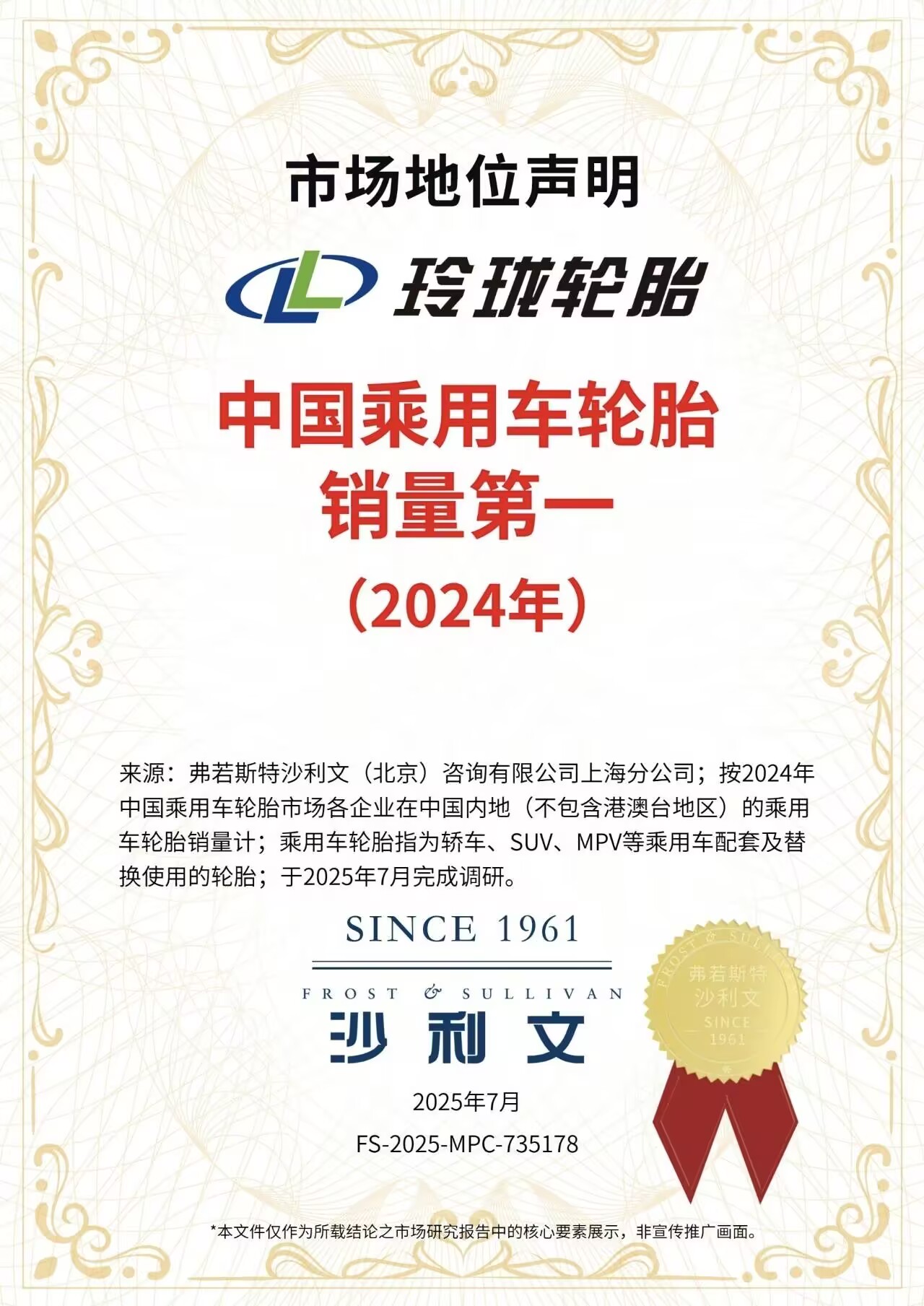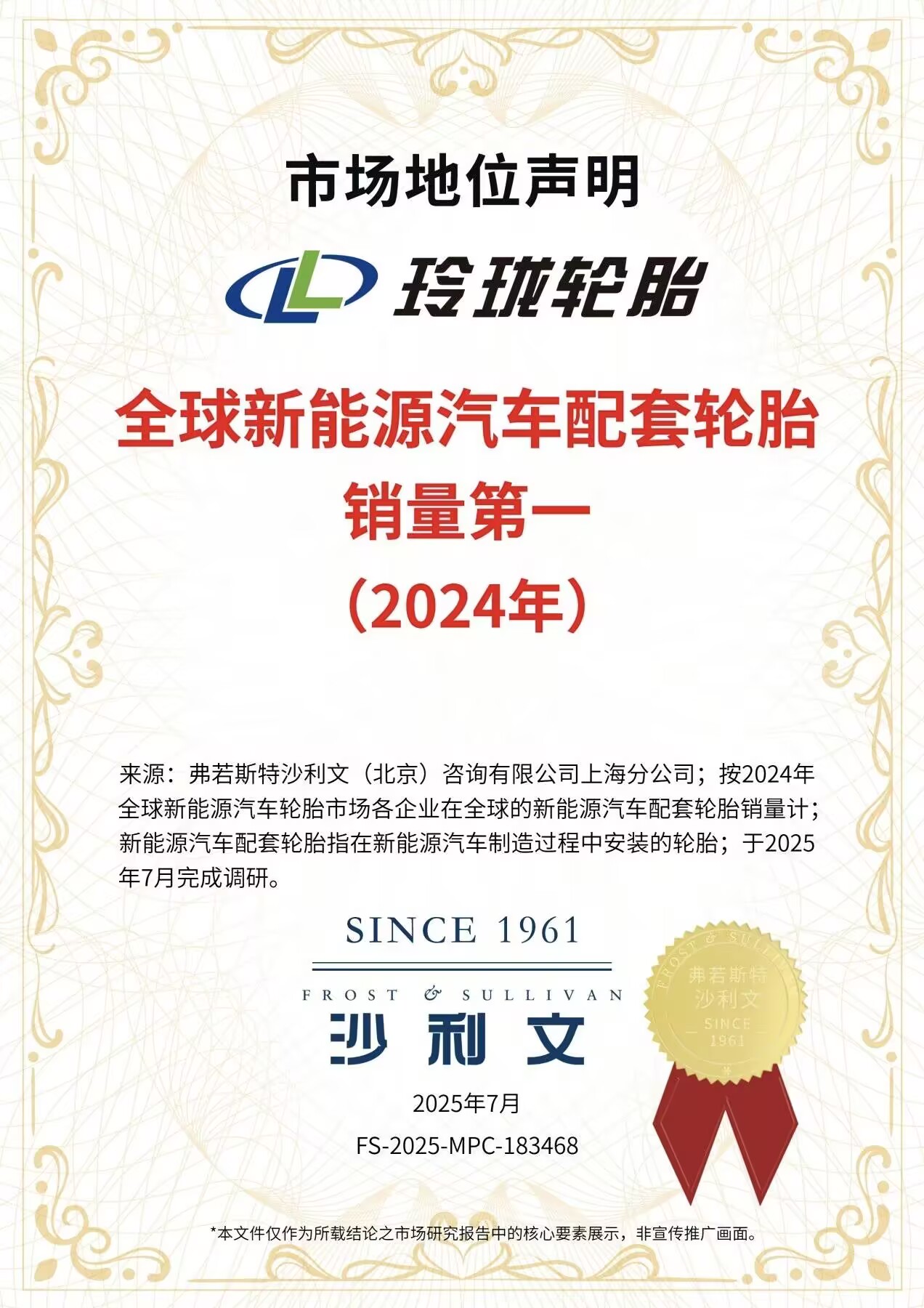 7月16日,从玲珑轮胎获悉,日前,全球权威咨询机构弗若斯特沙利文(Frost & Sullivan)正式授予玲珑两项市场地位认证:基于2024年销量数据,玲珑再获“中国乘用车轮胎销量第一”与“全球新能源汽车配套轮胎销量第一”的权威认证,延续2023年数据双赛道领先优势,进一步巩固其市场领导地位。