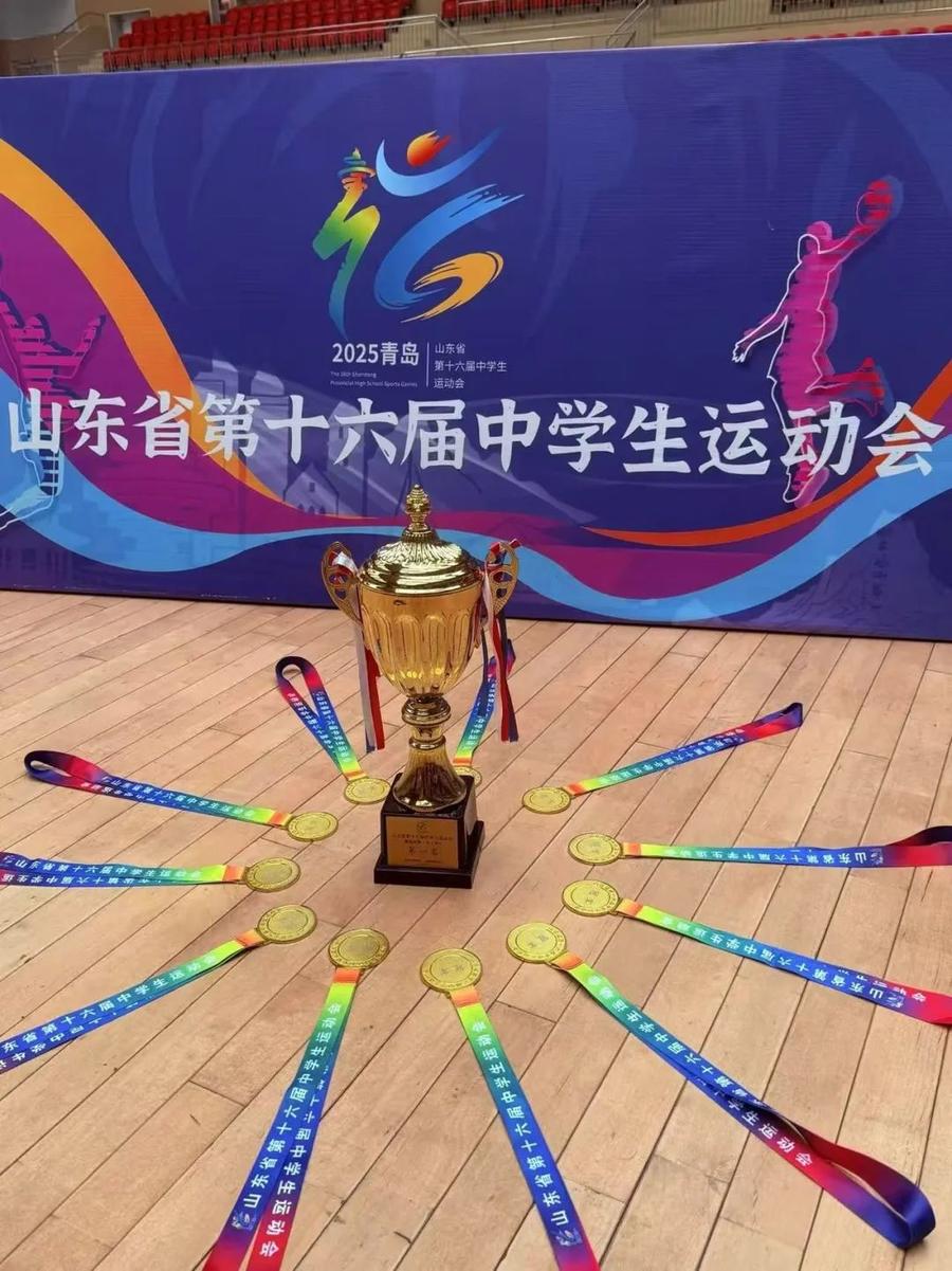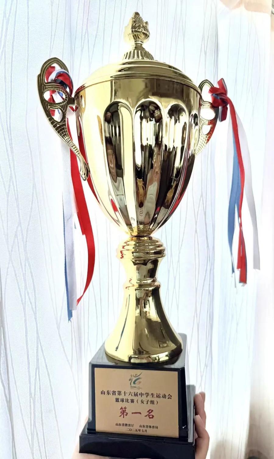这是继第十四届省中运会后,日照一中女篮代表日照市第二次摘得该项赛事桂冠。这座沉甸甸的冠军奖杯,不仅彰显了学校篮球运动的强劲实力与深厚底蕴,也为日照市代表团贡献了宝贵的45分(相当于单人项目的五枚金牌),为家乡赢得了荣誉。