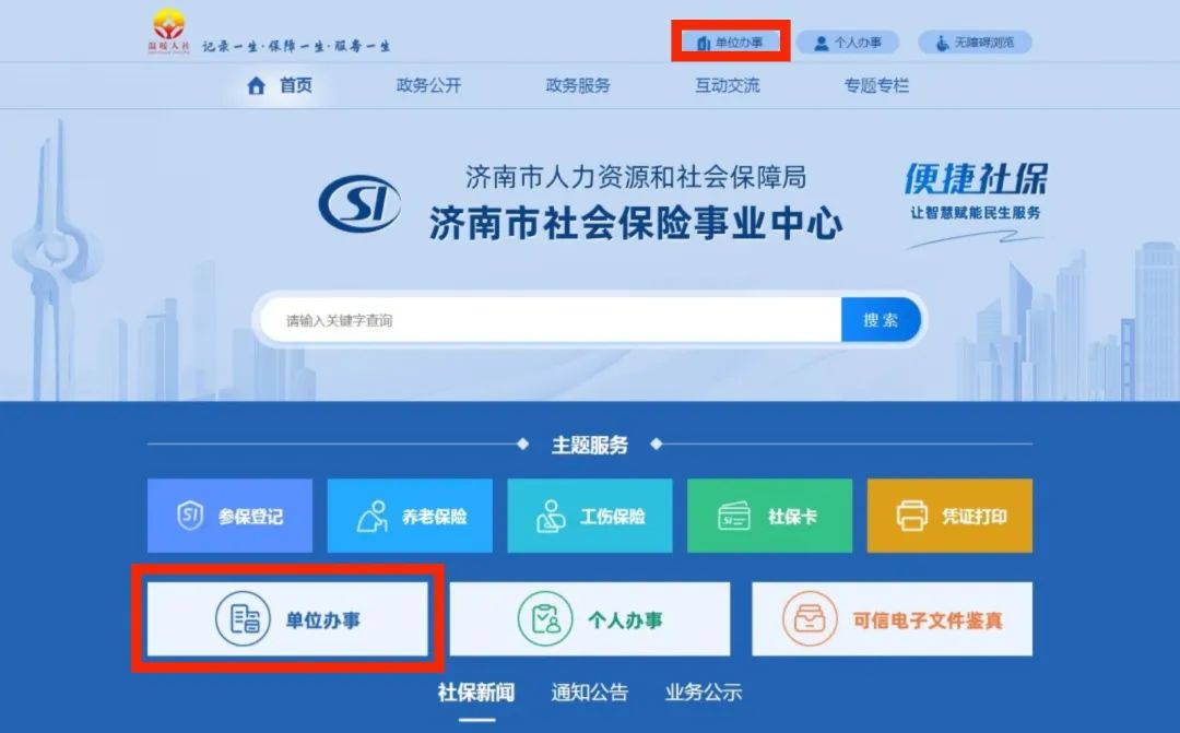 单位可通过济南市社保中心官网—“单位办事”,登录单位网上服务系统,通过“社会保险申报-增员申报”功能为职工办理社保增员。