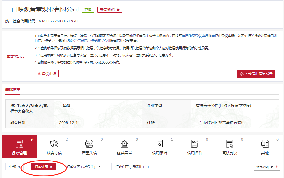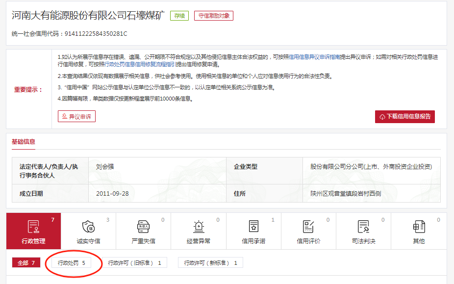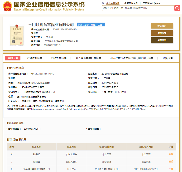 义马煤业旗下5企同登行政处罚栏