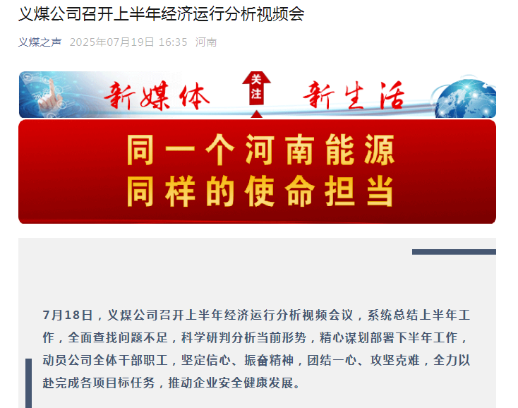 据义马煤业集团官方微信公众号“义煤之声”内容,7月18日,该公司召开上半年经济运行分析视频会议,公司党委书记、董事长杨联合表示,必须树牢“安全第一”理念,要深刻认识到安全是一切工作的前提和基础,认真吸取事故教训,强化红线意识、底线思维,用好双重预防体系、安全生产标准化和安全绩效考核“三大抓手”,不断提升安全管控能力和水平,为生产经营提供安全环境。
