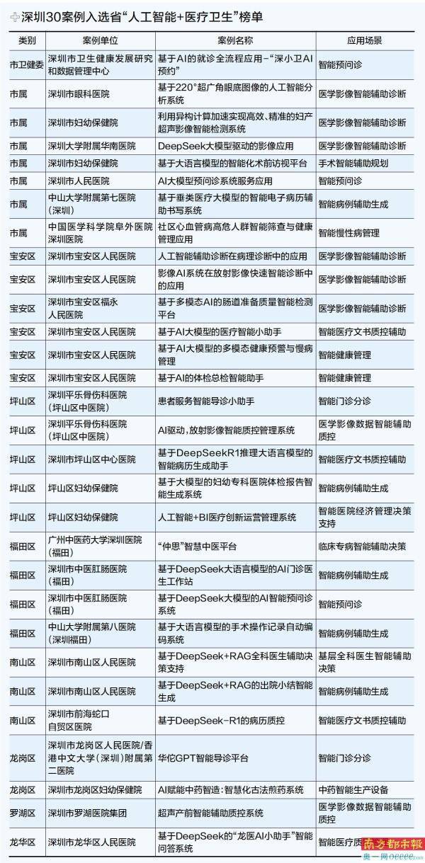 深圳共有30案例上榜,其中市属医院(含市卫健委)8个,宝安区6个,坪山区5个,福田区4个,南山区3个,龙岗区2个,罗湖区和龙华区各1个,光明区、盐田区和大鹏新区无案例上榜。