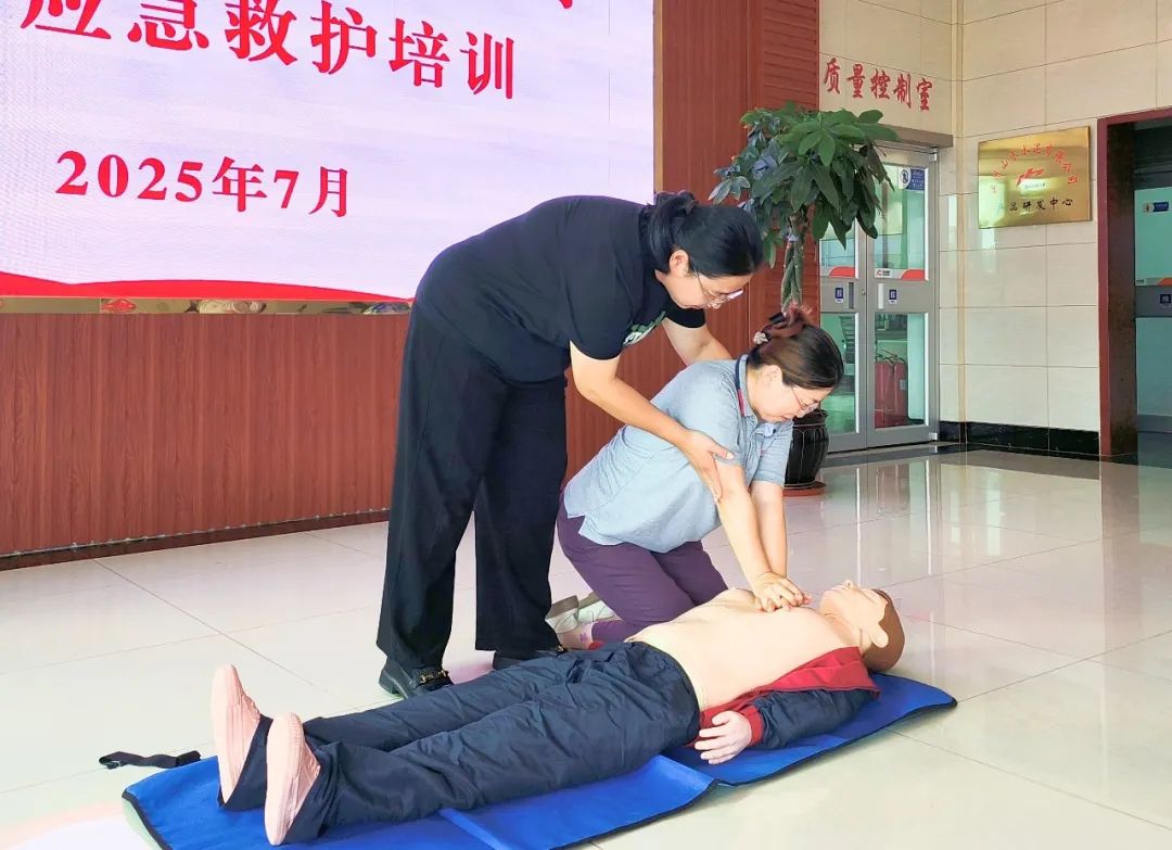 理论讲解后,医护人员为大家进行了标准、规范的单人心肺复苏操作示范。从评估环境安全、判断患者意识和呼吸、启动应急反应系统(拨打120)、胸外按压的位置、深度、频率,以及开放气道、人工呼吸的关键手法,每一个步骤都清晰展示,重点突出。在场职工踊跃参加,王青主任耐心细致地进行一对一指导,确保每位职工都能真正掌握这项急救技能。
