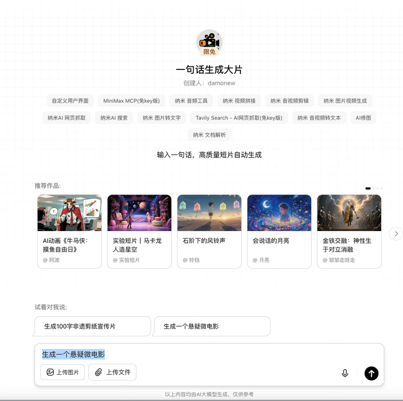 “一句话生成大片”智能体