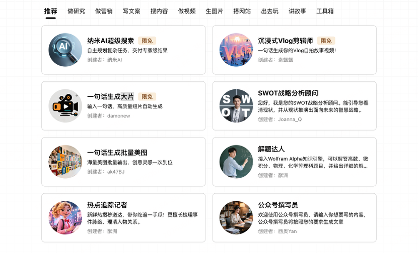 纳米AI的各类智能体