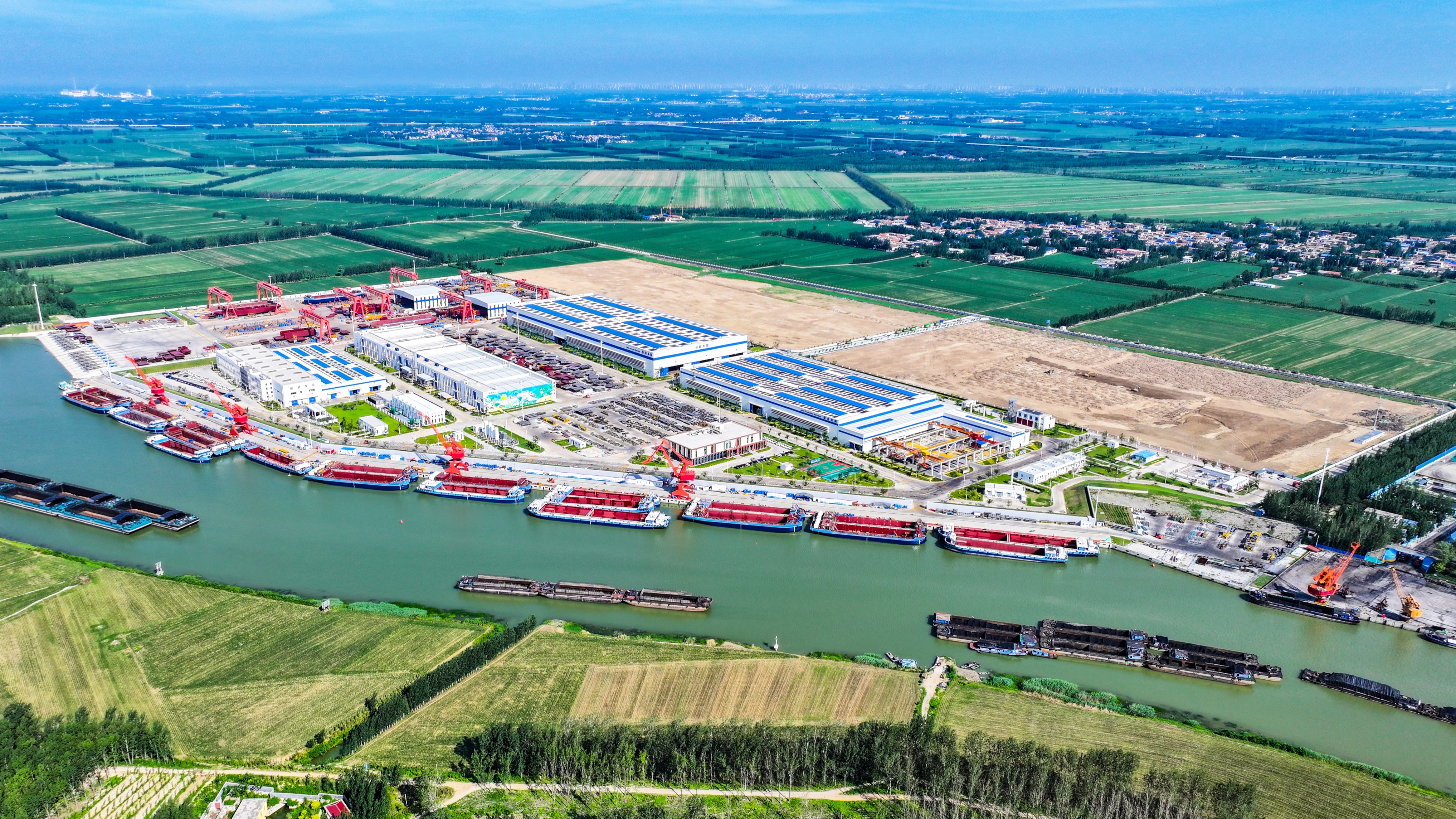 不仅如此,目前,山东新能船业有限公司已形成2000-5000吨级内河新能源船舶批量化建造能力,累计签约船舶订单168艘,开工建造新能源船舶90艘,成为区域船舶制造市场复苏的“主引擎”。今年6月,新能船业与济宁天河达海供应链公司签约的29艘智能运输船舶意向,不仅是企业的市场拓展,更是“港航货运需求—船舶制造供给—城市配套服务”闭环的生动实践。