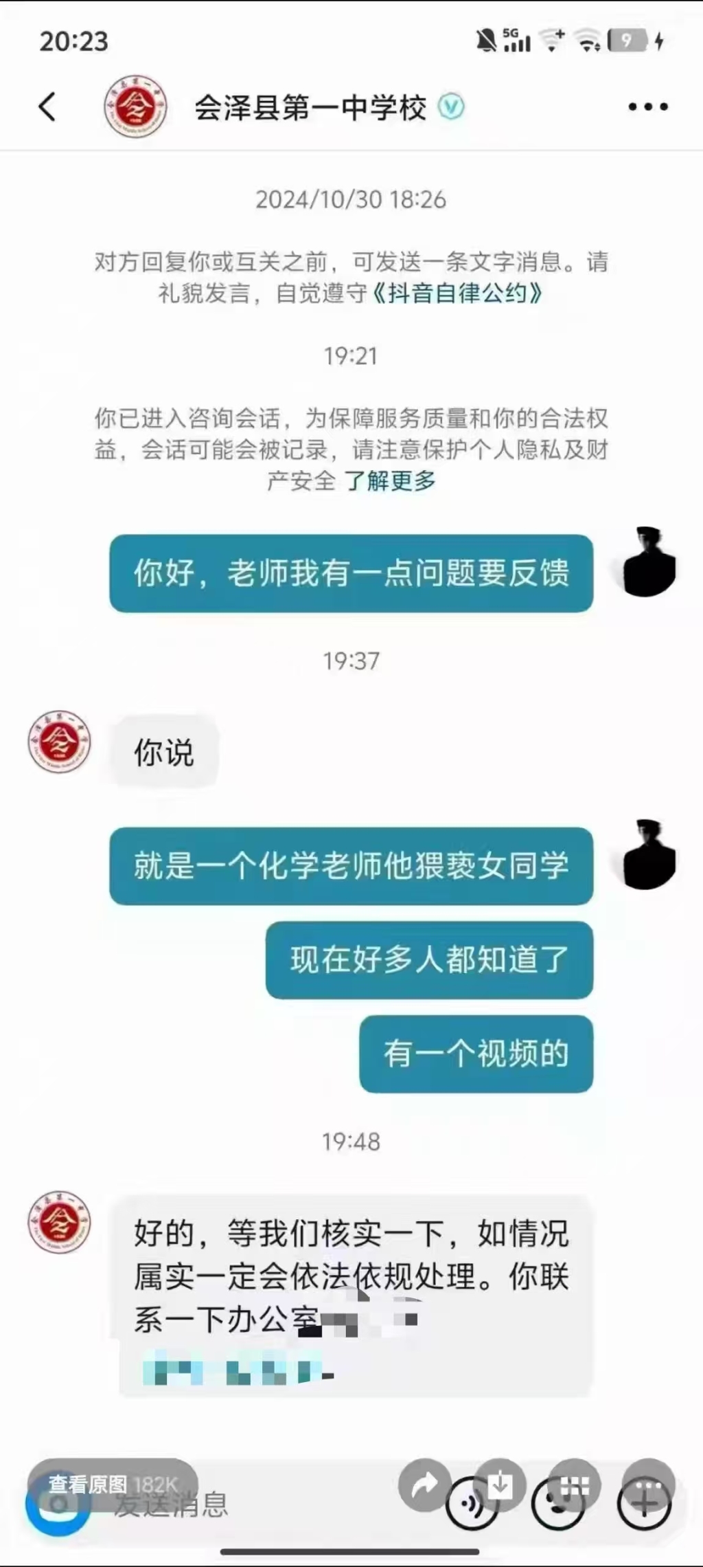 相关截图显示,有网友向会泽县第一中学的社交账号私信反映:高一年级教师马某某在教室内当着其他学生的面,对女生实施性骚扰,包括触摸敏感部位、搂抱等不符合师生正常交往的越矩行为,希望学校能彻查并予以严惩。