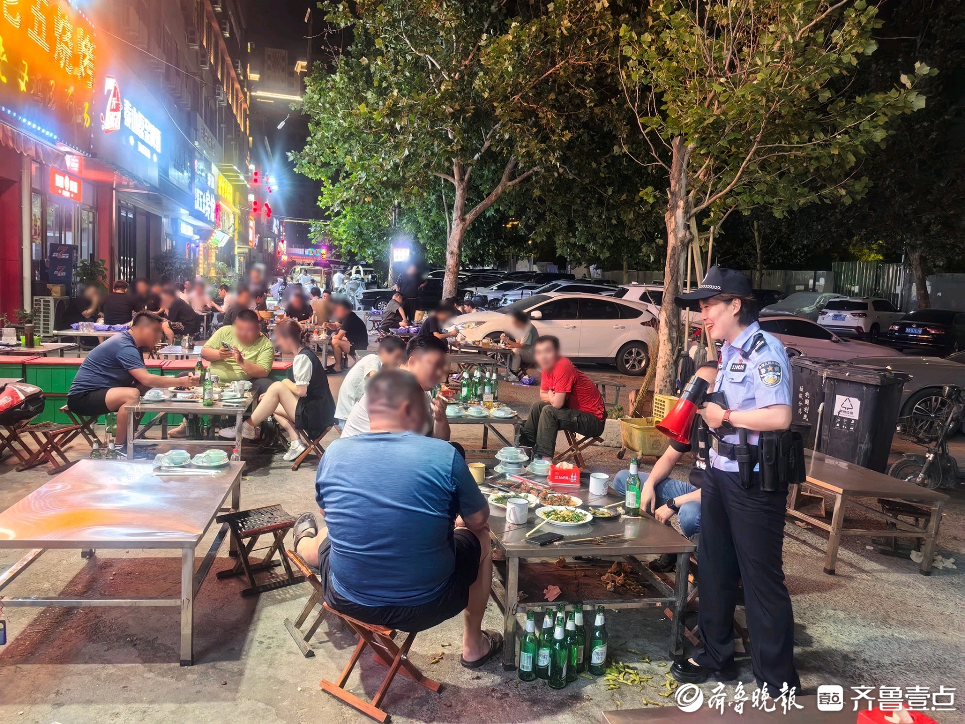 每当夜幕低垂,济南街头巷尾的烧烤炉火渐次燃起。扎啤杯碰撞声与谈笑声交织,奏出一曲充满烟火气的交响乐。在历下区“老李烧烤”的院落里,炭火明灭间,老李手腕翻飞,肉串在铁架上嗞嗞作响。与往日眉头紧锁不同,此刻他眼中透着从容:“从前最怵客人喝多了闹事,如今在派出所‘进修’归来,心里踏实多了。”