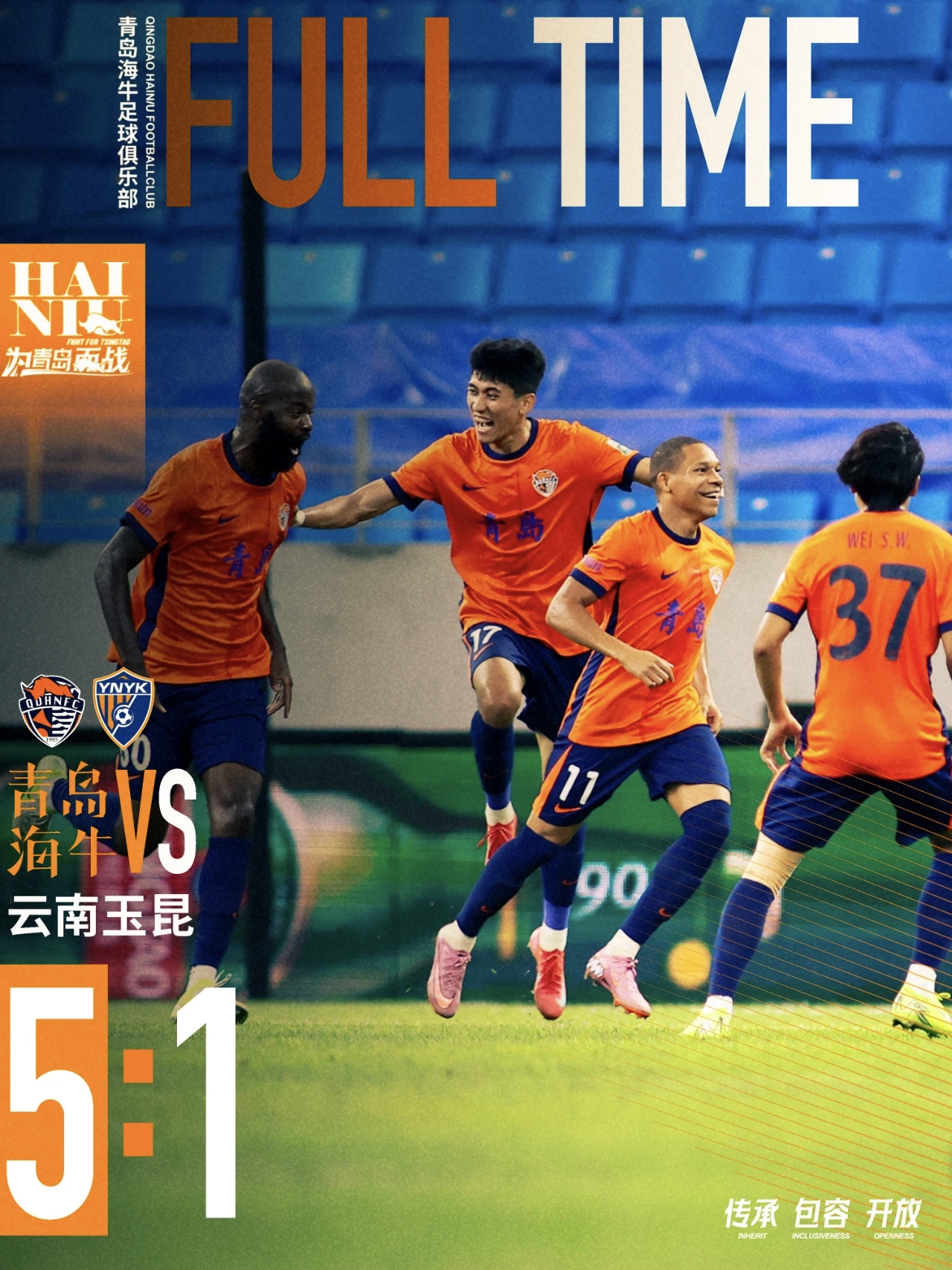 这场5:1的大胜,正是这份责任与动力的最佳体现。带着这场胜利,青岛海牛将在保级路上继续稳步前行,而胸前的“青岛”二字,也必将成为球队征战余下赛季的精神旗帜。