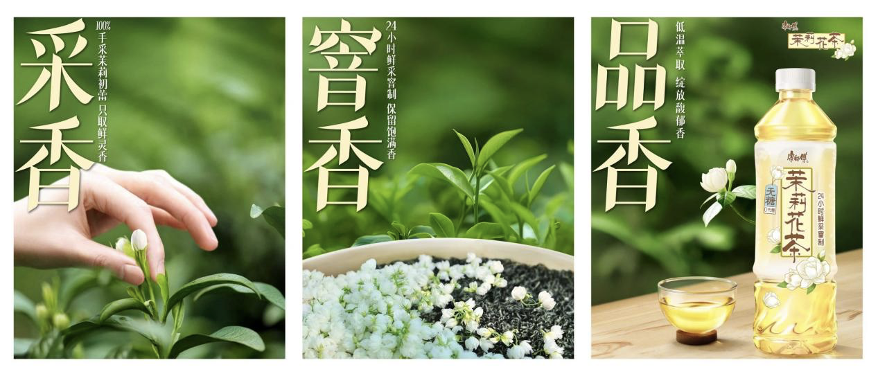 在无糖赛道上,康师傅上市“茉莉龙井”“鲜绿茶”等新品,以“鲜茶”“鲜萃”等作为卖点,通过差异化创新实现突围。据康师傅方面介绍,公司新品“鲜绿茶”上市后迅速登上京东零糖茶饮新品榜首;无糖茉莉花茶同样赢得了消费者的持续复购。