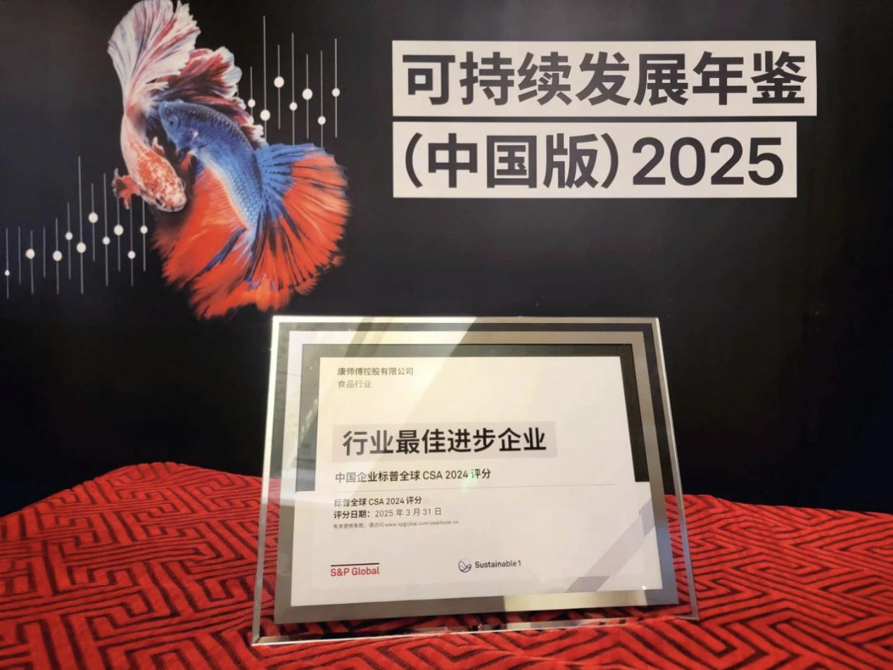 2025年5月,康师傅首次入选标普全球《可持续发展年鉴(中国版)》,在全球396家同业中排名第48位,超过88%的全球同行,并荣获食品行业唯一的“行业最佳进步企业”。