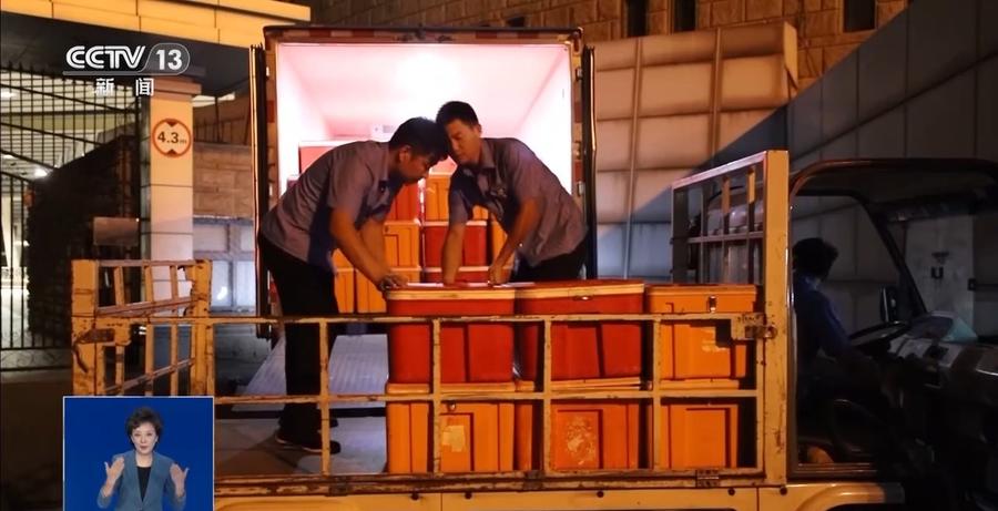 除了烹饪温度的把控,在时效上,为了保证食材的新鲜,轻食也必须在36小时内食用完。深夜时分,夜色已浓,冷链车开进基地,今天所有的轻食套餐将被运往北京西站物流分拨站,然后分拨到由北京西站始发的部分高铁列车上。从物流车到最后进入冷库,全程控制在0~8℃。