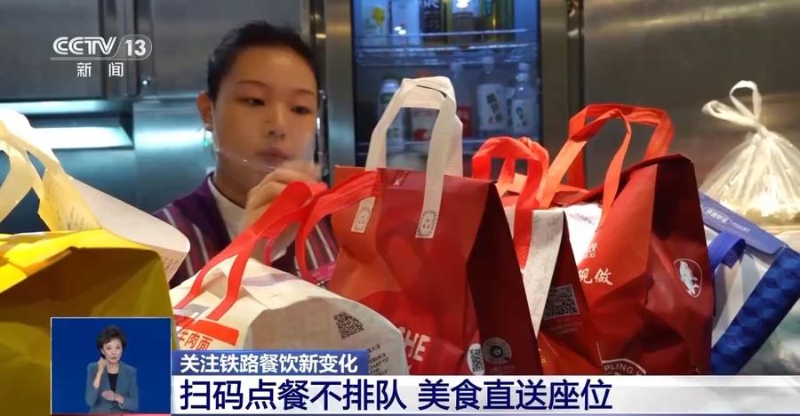 除了餐饮品种,点餐方式也有了新变化。目前,全国有92个车站能实现互联网订餐,覆盖全国铁路枢纽和客流较大车站。旅客只需扫描座椅扶手上的“铁路畅行码”,即可体验“扫码下单、美食到座”的便捷。