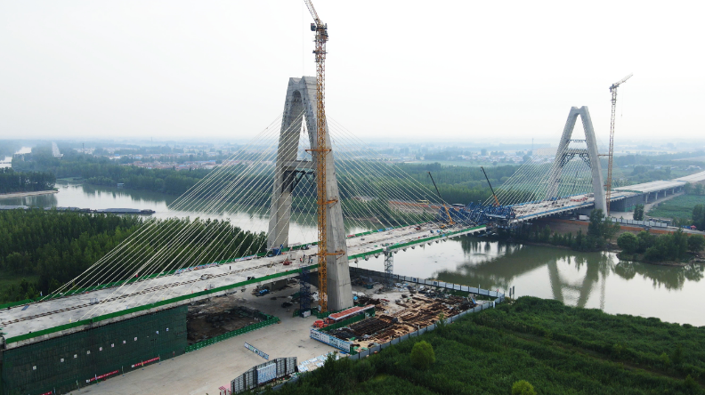 当下,京杭运河特大桥建设现场热潮涌动,两座高90多米的“A”型主塔分立京杭运河两岸,形成隔岸相望之势。作为邹城至济宁公路项目(济邹高速)的控制性工程,京杭运河特大桥全长5.667公里,主桥长466米,为双塔双索面斜拉桥。目前,该特大桥已经进入到了合龙前的最后冲刺阶段。