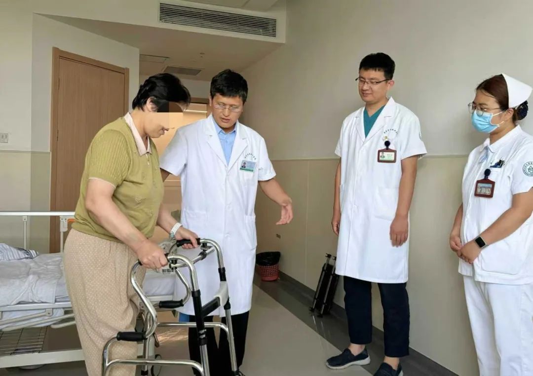 “大娘,膝盖恢复得怎么样啦,下地行走怎么样了?”8月13日,牟宗友和医护团队来到病房查房,今年70多岁的张大娘,长期被膝关节疼痛所困扰,遭受着极大的痛苦,一度对生活失去信心,听说家门口的医院就能做关节置换手术,于是,在8月初,慕名找到牟宗友。手术恢复期的张大娘,精神状态良好,目前还在住院观察。“这么大岁数,我都没想到能再次站起来,简直像在做梦,以前都不愿出门。早知这样,早来手术了,不遭那罪了。感谢人家牟大夫。”张大娘说。