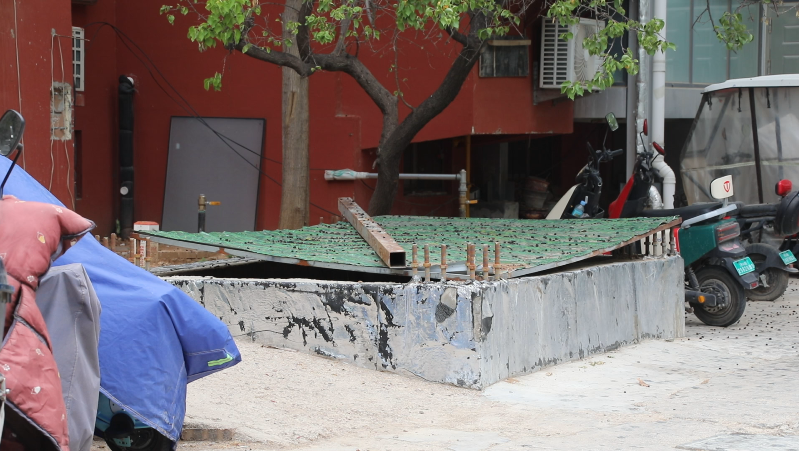 济南市市中区铁路小区南苑3号楼1单元前的电梯基坑