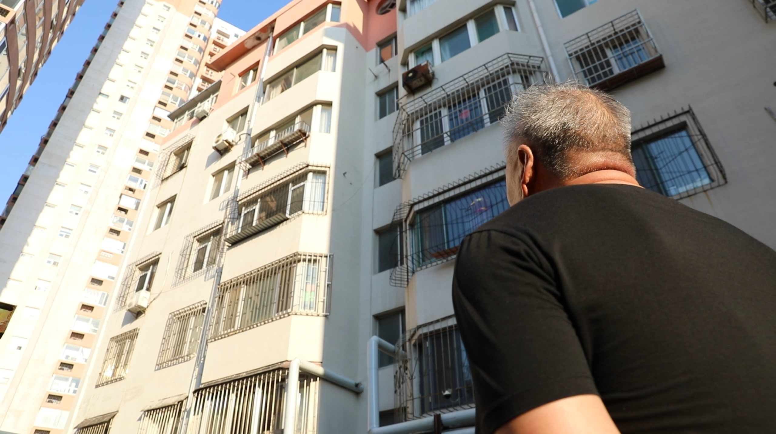 张先生望着所居住的单元楼,他和邻居们等待电梯已有5年之久
