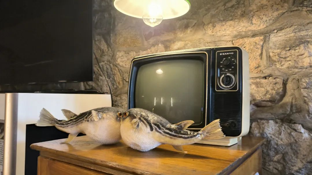 “渔民世代敬畏大海,这对舞狮头正是北方沿海城市的渔民祈福的传统信物。我把它挂在这里也是希望进店的客人可以看到、了解这种民俗文化。”劳模河豚海鲜餐厅负责人曹配源曾从事艺术品交易多年,店内摆放的很多老物件,都是他从各地搜集的民俗遗存。在他看来,这些老物件记录着不同时代的文化印记与地域特色,与防空洞古朴厚重的历史感相得益彰,共同诉说着时光的故事。