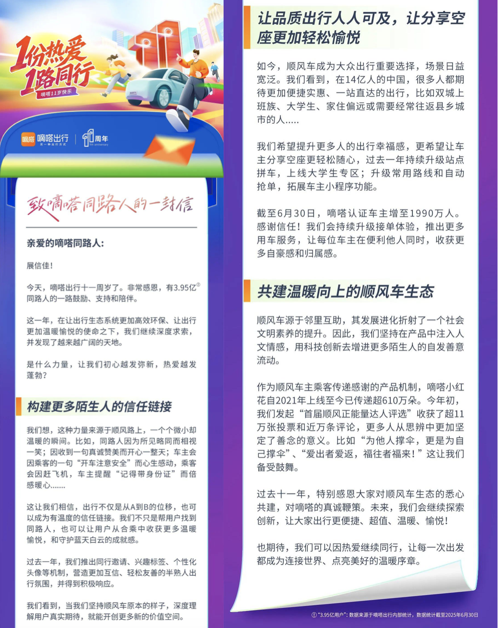 2025年上半年,嘀嗒出行认证车主数量增至1990万,同比增长超10%,顺风车正在成为更多有车族分摊用车成本的重要选择。