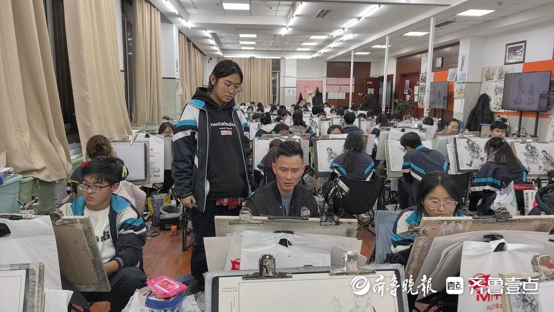 高中在发力,培训机构也没闲着。过去不操心文化课的艺考机构,现在纷纷加配文化课老师。潍坊一家画室专门组了文化课团队,还外聘全职督导老师;济南一家画室也跟高中合作,开设针对艺考生的文化课。