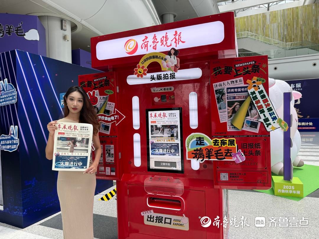 除了AI车展交互智能体“齐齐”之外,齐鲁晚报复古拍报机同样成为本届车展的人气打卡点,吸引众多消费者驻足体验,并纷纷拍摄这份独一无二的“车展纪念版”头版报纸留念。