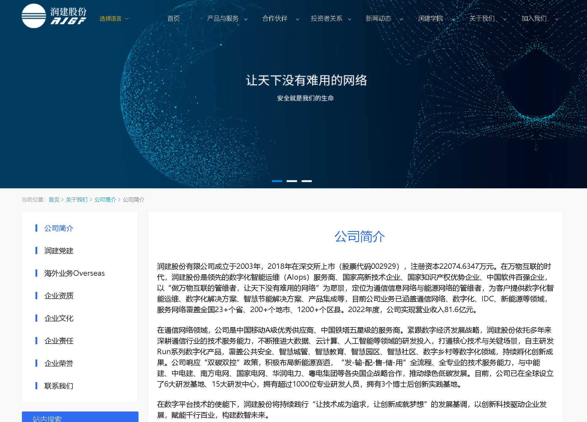 润建股份有限公司成立于2003年,2018年在深交所上市(润建股份 002929),注册资本22074.6347万元。目前公司业务已涵盖通信网络、数字化、IDC、新能源等领域,服务网络覆盖全国23+个省、200+个地市、1200+个区县。2022年度,公司实现营业收入81.6亿元。