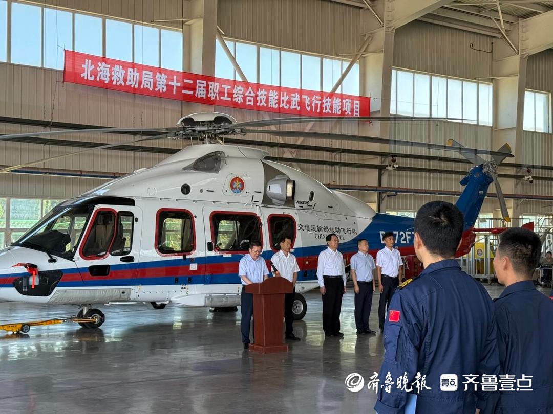 9月4日上午,在山东烟台沙河口机场,交通运输部北海救助局救助飞行技能比武拉开帷幕。此次比武旨在全面落实预警“叫应”机制,全面检验防汛救灾和海上救助能力。