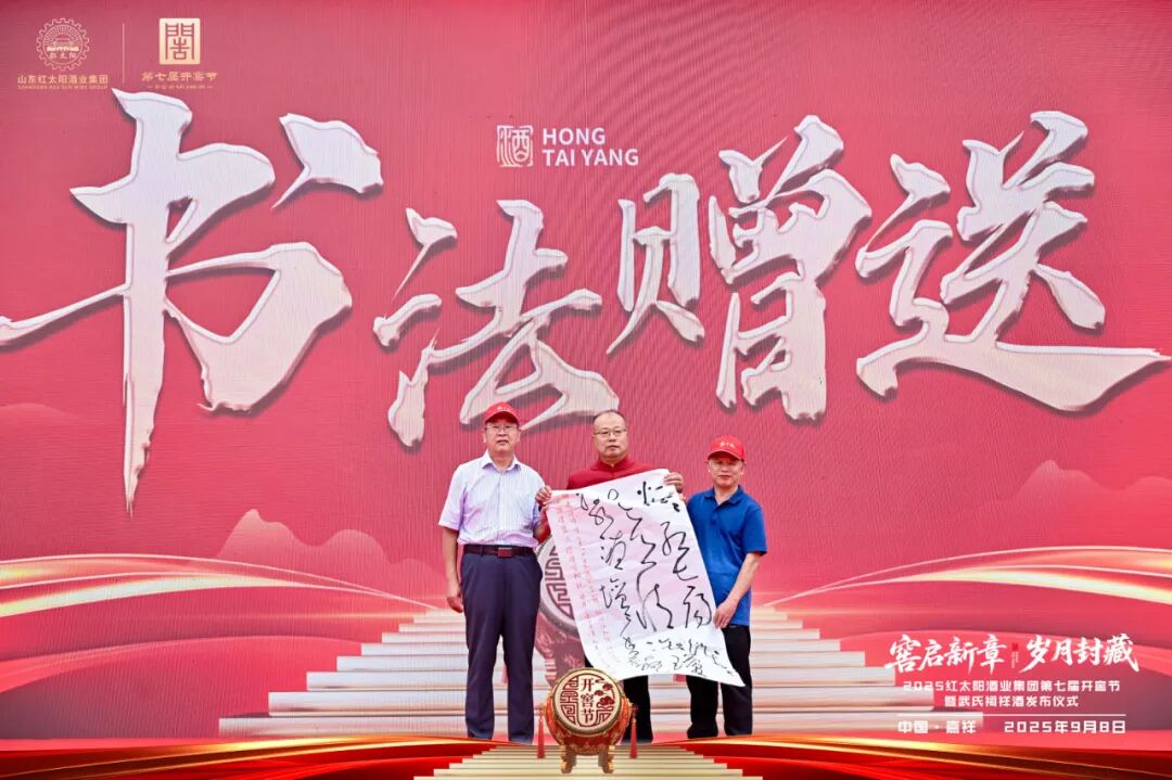 在活动现场,济宁市政协原常委、市规划局局长韩连绪,济宁市政协原常委、市文联主席、中国书法家协会会员王道雨也应邀莅临出席,并现场挥毫泼墨,为红太阳酒业题写了书法作品。白酒源于五谷、成于时光;书法起于笔墨、归于心性。书法醉人与酒共,酒道书艺亦相通。一幅幅极具收藏价值的墨宝丹青,犹如一座座连接美酒与艺术的桥梁,为开窖节增添了一份独特的文化魅力。