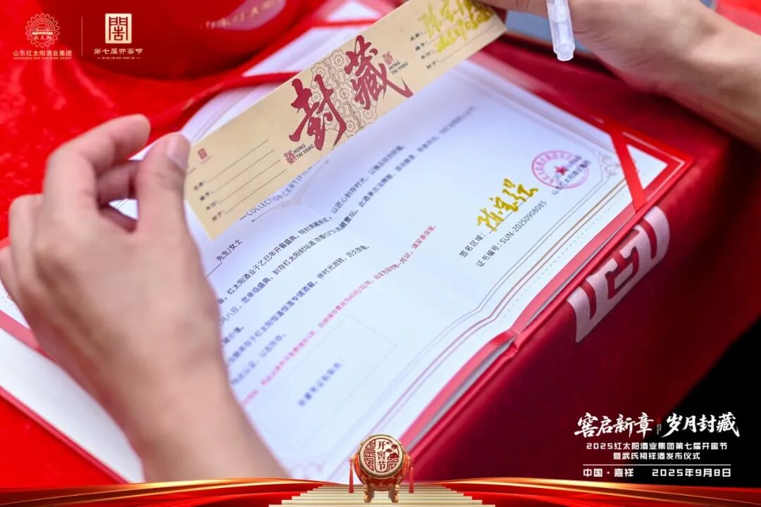 原浆头排酒,披上大红绸,鉴评嘉宾挥毫泼墨题写美好寄语和封藏日期。公证人员现场宣读公证词,以法律之名确认这批原浆头排酒的封藏时间、数量品质,为每坛酒赋予独一无二的身份认证。这一刻,文化艺术与法律公证相得益彰,既提升了原浆头排酒的文化收藏价值,也建立了消费者对品牌的深度信任。