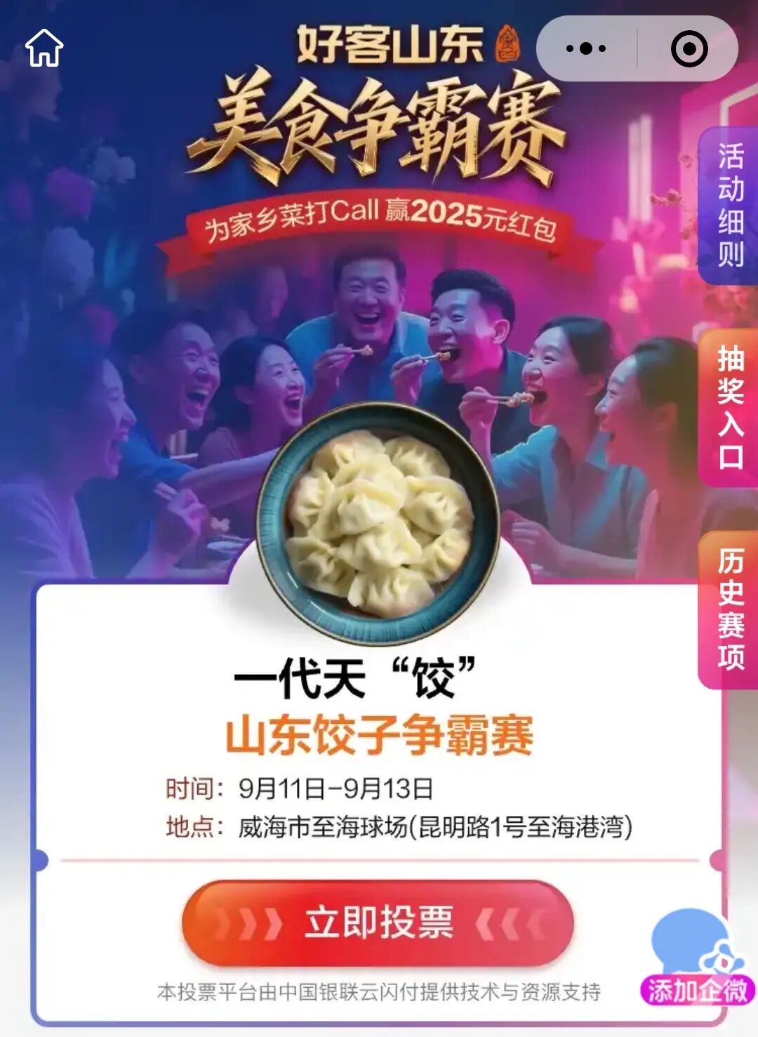 秋意浓,饺情更浓!威海的鲜、香、暖,都“饺”给了你!用云闪付App为威海投票,为家乡味道“饺”傲!