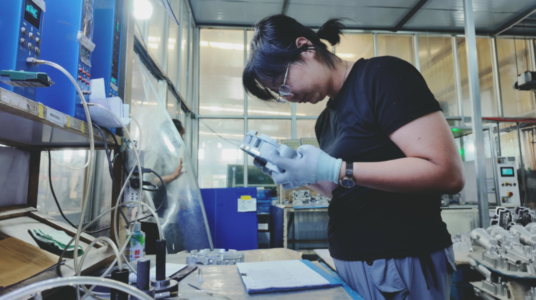 在汽车外零部件领域,公司围绕铝合金材料的轻量化优势,开发出中间壳、端盖、液变壳、90KW电机壳、150/250KW箱体等多款铝合金件产品。这些产品不仅延续了公司一贯的高精度标准,更在适配性与协同开发上展现出独特优势。“我们始终以客户需求为导向,从产品设计阶段便与客户深度沟通,确保产品不仅质量过硬,还能完美匹配客户的装配需求。”裕隆金和总经理丁汝峰介绍,以90KW电机壳为例,其采用一体化压铸工艺,相比传统拼接结构,重量减轻15%,同时强度提升20%,完美契合新能源汽车轻量化、高安全性的需求;而 150/250KW箱体则针对大功率电机散热需求,优化了内部流道设计,散热效率提升30%,深受小鹏、北汽等客户认可。