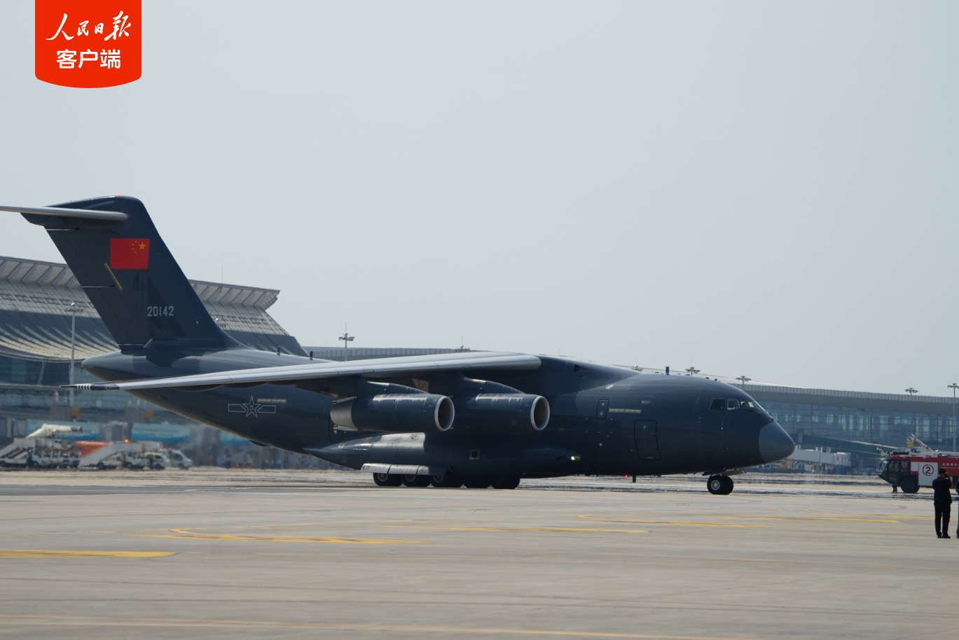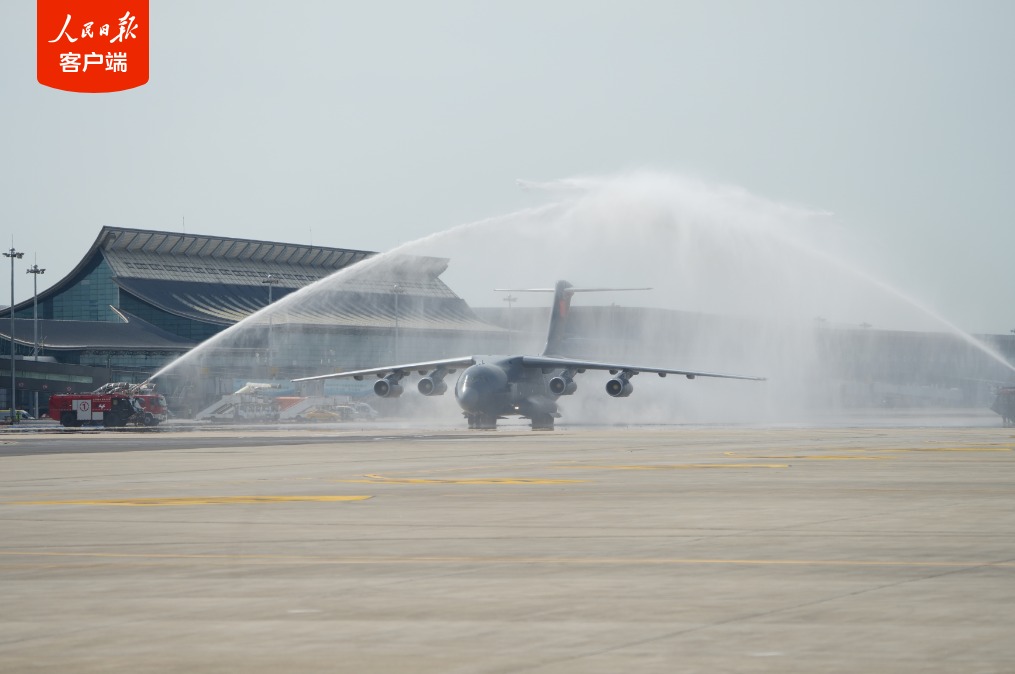 10时57分,空军运–20专机缓缓降落在辽宁沈阳桃仙国际机场。专机进入中国领空后,空军4架歼–20战斗机护航,并在机场上空通场,“双20”同框向志愿军烈士致以崇高敬意,桃仙国际机场以“过水门”航空最高礼仪迎接志愿军烈士遗骸回家。