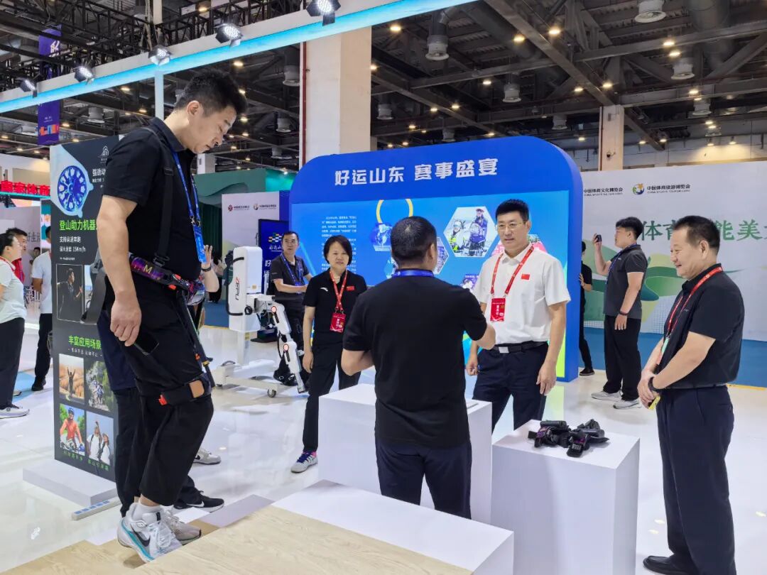 在山东以“好运山东・活力齐鲁”为主题打造的展厅中,“活力之源”板块的泰山登山助力机器人凭借实用创新设计,成为全场焦点,吸引大批参观者体验。