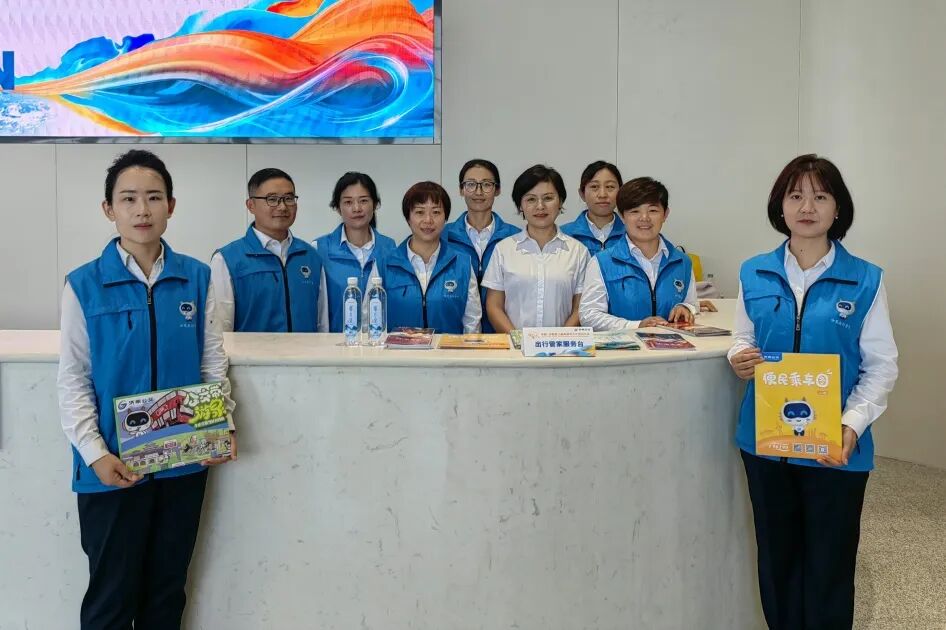 济南公交在大会服务保障处设置公交出行管家服务台,为参会人员提供公交出行咨询、返程乘车引导等志愿服务,用全方位的优质服务展示城市好客有礼形象。