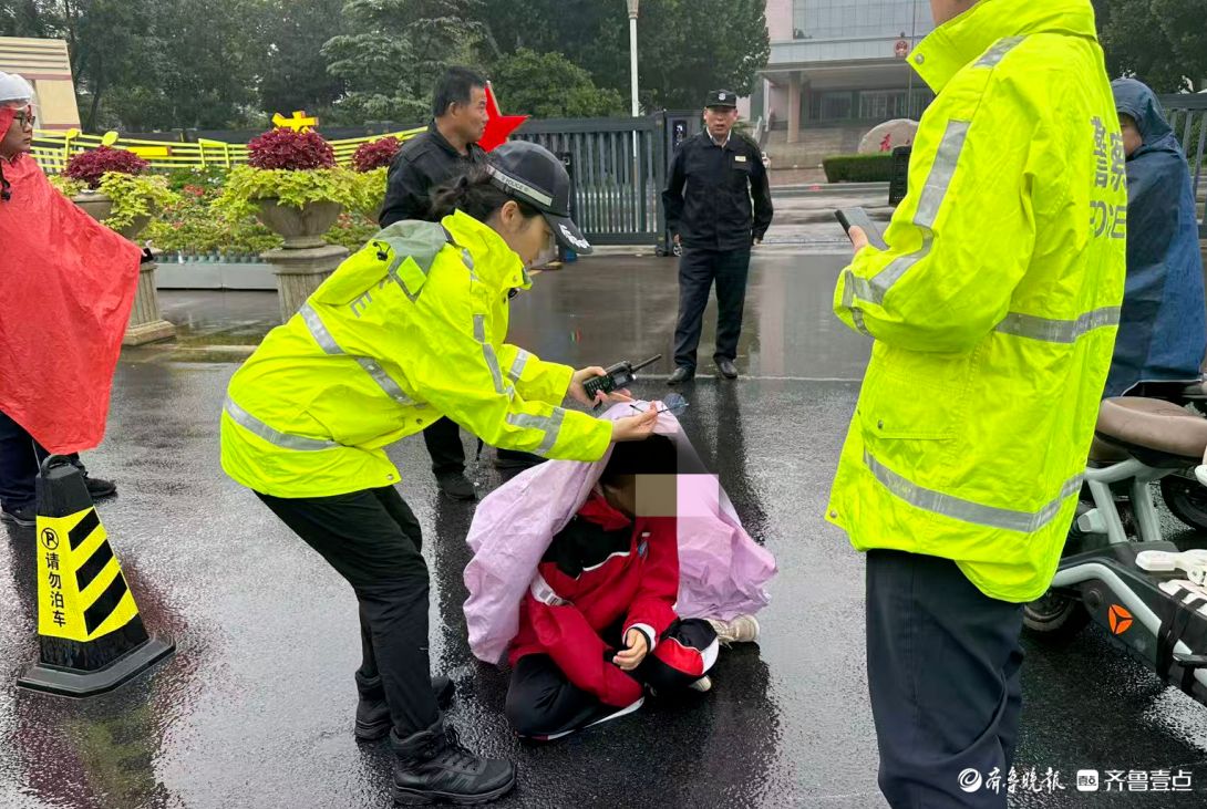 雨天突发!女生骑车摔倒受伤,聊城执勤交警暖心救助