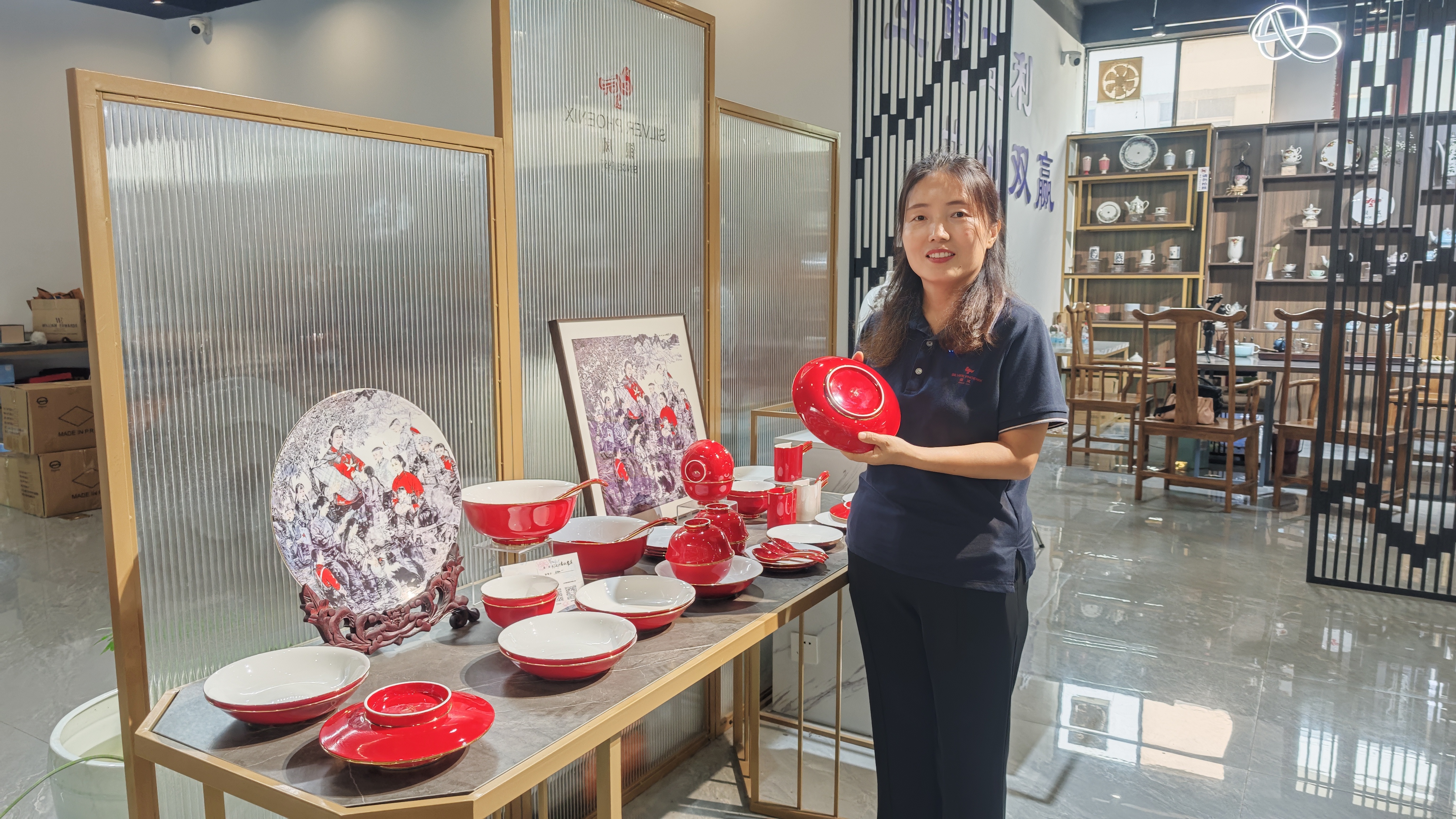 近年来,她带领团队深耕红色题材设计,“沂蒙风情”“沂蒙红”等系列瓷器,成了连接陶瓷文化与红色基因的纽带。