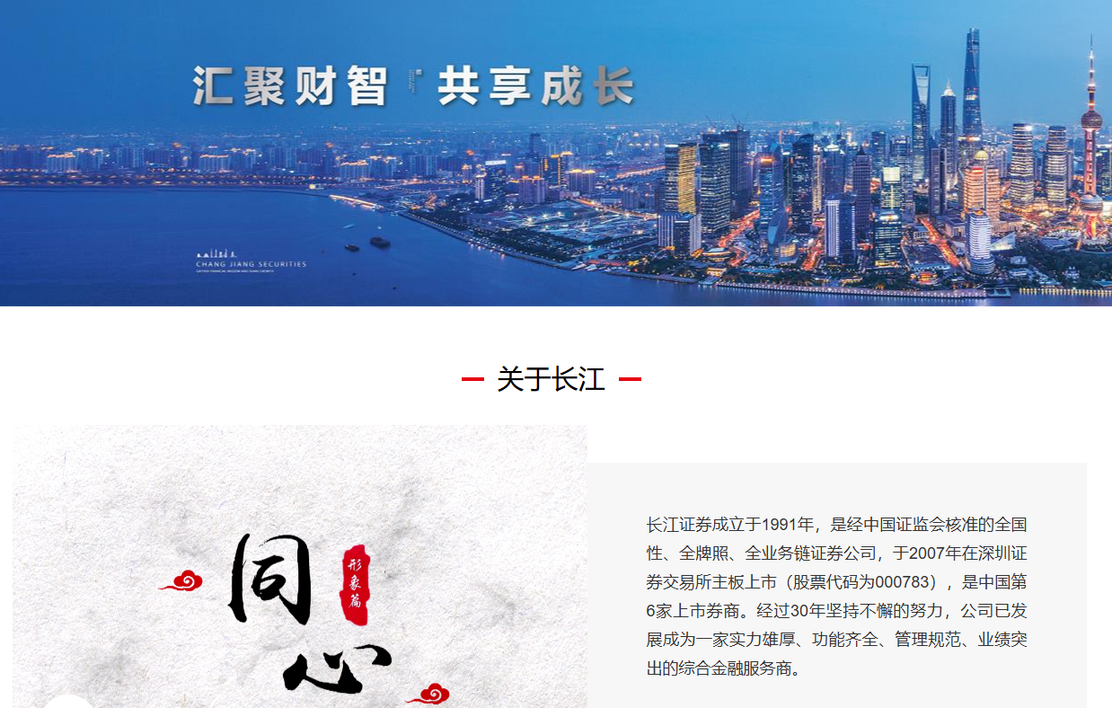 长江证券成立于1991年,是经中国证监会核准的全国性、全牌照、全业务链证券公司,于2007年在深圳证券交易所主板上市(股票代码为000783),是中国第6家上市券商。
