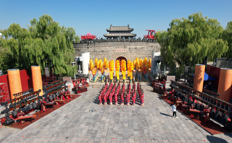 礼序乾坤,乐和天地。上午10点,在曲阜万仞宫墙前,180名来自山东青年政治学院、曲阜师范大学、梁山职业中专舞蹈学校的学子,正全情投入开城仪式编钟乐舞《金声玉振》的彩排中。整齐的舞姿与典雅的乐声交织,吸引过往市民与游客驻足。作为公祭孔子大典的开篇环节,这场表演不仅是仪式的首个高潮,更承担着引领参祭嘉宾进入文化情境的重要作用。
