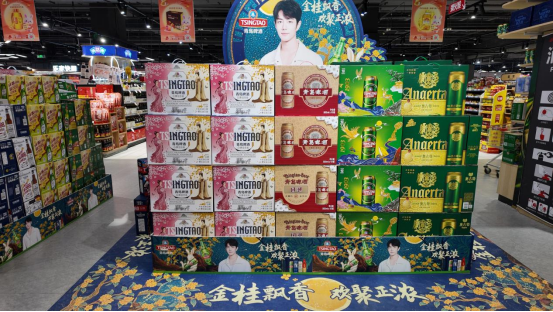 在济南北园大街的银座超市内青岛啤酒精心打造的“金桂飘香,欢聚正浓”礼盒堆头前人头攒动。经典1903、鸿运当头、奥古特、青岛纯生听装、白啤组合装等中秋礼盒被整齐地码在堆头上。“中秋前后青啤礼盒销量翻倍,每天基本上都要补货”超市促销员黄女士向记者介绍到。