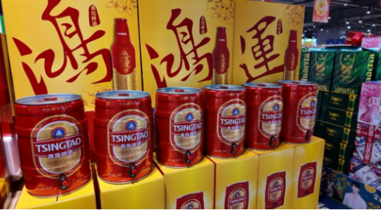 随着中秋佳节临近,青岛啤酒鸿运当头的礼盒销量也持续攀升。超市促销员表示:“很多人一买就是四五提,除了送给老人和朋友,也摆在家里增添喜气。”