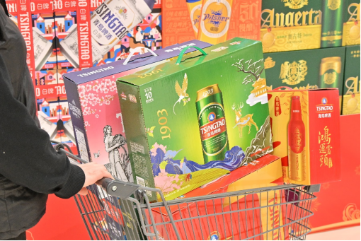 据店员介绍,在众多选择中,青岛啤酒的几款主打礼盒凭借鲜明特色受到消费者欢迎。经典8+2礼盒以实惠见长,内含8罐青岛啤酒经典和2罐青岛啤酒白啤,让消费者能以实惠的价格,在一箱中享受两种不同风味的啤酒。