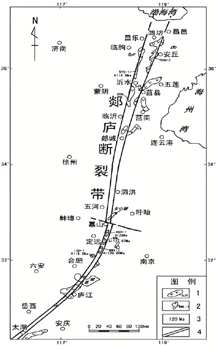 郯庐断裂带是东亚大陆上一条纵贯南北的巨型平移断裂带,因最初发现其北起山东郯城、南至安徽庐江而得名,实际在中国境内南起湖北武穴,北至俄罗斯境内,总长超2400公里。中国东部有记载的最强地震1668年郯城8.5级地震就发生在该断裂带上,郯庐断裂带长期被列为全国地震重点监视防御区。