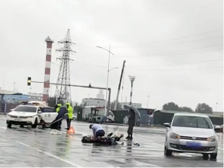9月23日下午3点左右,芝罘区环海路与幸福南路交会处,一场突发的交通事故打破了雨天的平静。一辆大货车与一辆电动车发生刮擦碰撞,巨大的冲击力导致电动车上的中年女士重重摔倒在地,当场陷入昏迷,情况危急。