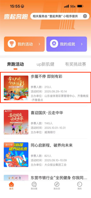 据了解,本次线上健步行活动将从2025年9月29日持续至10月14日。活动形式新颖,玩法简单有趣。活动期间,市民朋友们只需登录“壹起奔跑”微信小程序,并在活动页面授权“微信运动”步数,每日步数达到5000步,即可成功点亮一个城市印记,并立即获得一次开启“幸运盲盒”的抽奖机会。