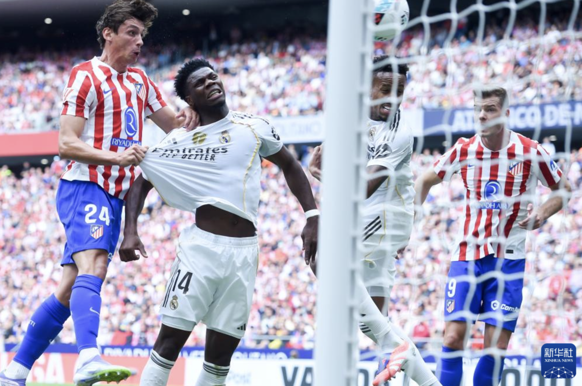 此前西甲六战全胜的皇马本轮做客大都会球场,挑战赛季开局磕磕绊绊的马竞。第14分钟,主队在一次前场任意球进攻中给了皇马一记下马威,勒诺尔芒接朱利亚诺·西蒙尼传球,门前近距离头球破网。