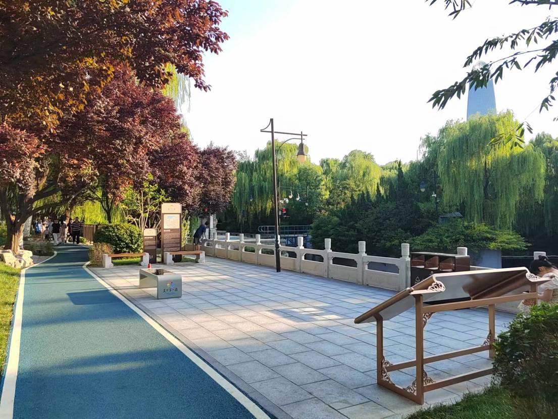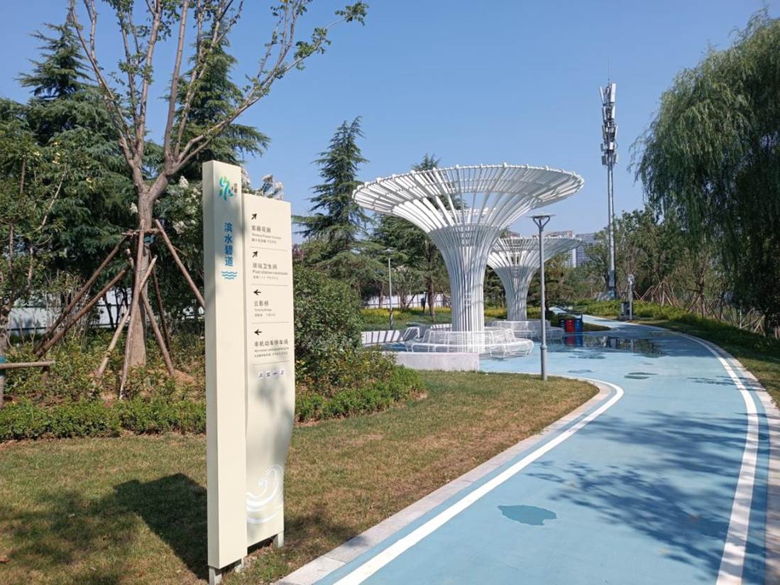 服务设施的完善是提升体验的关键。全市绿道统一设置了特色LOGO、标线及指示牌,在重要节点建设驿站,配备休憩座椅、垃圾箱、公厕等基本设施。CBD绸带公园绿道的驿站设计简约时尚,内设休憩区、花卉展示区和饮品售卖区,还配有雨伞、药箱等便民物品;济阳区滨水绿道串联起文体中心、济水公园等公共空间,实现了绿道与城市功能的无缝衔接。目前,全市绿道共建设各类驿站(休憩点)578处,成为市民途中的“绿色加油站”。